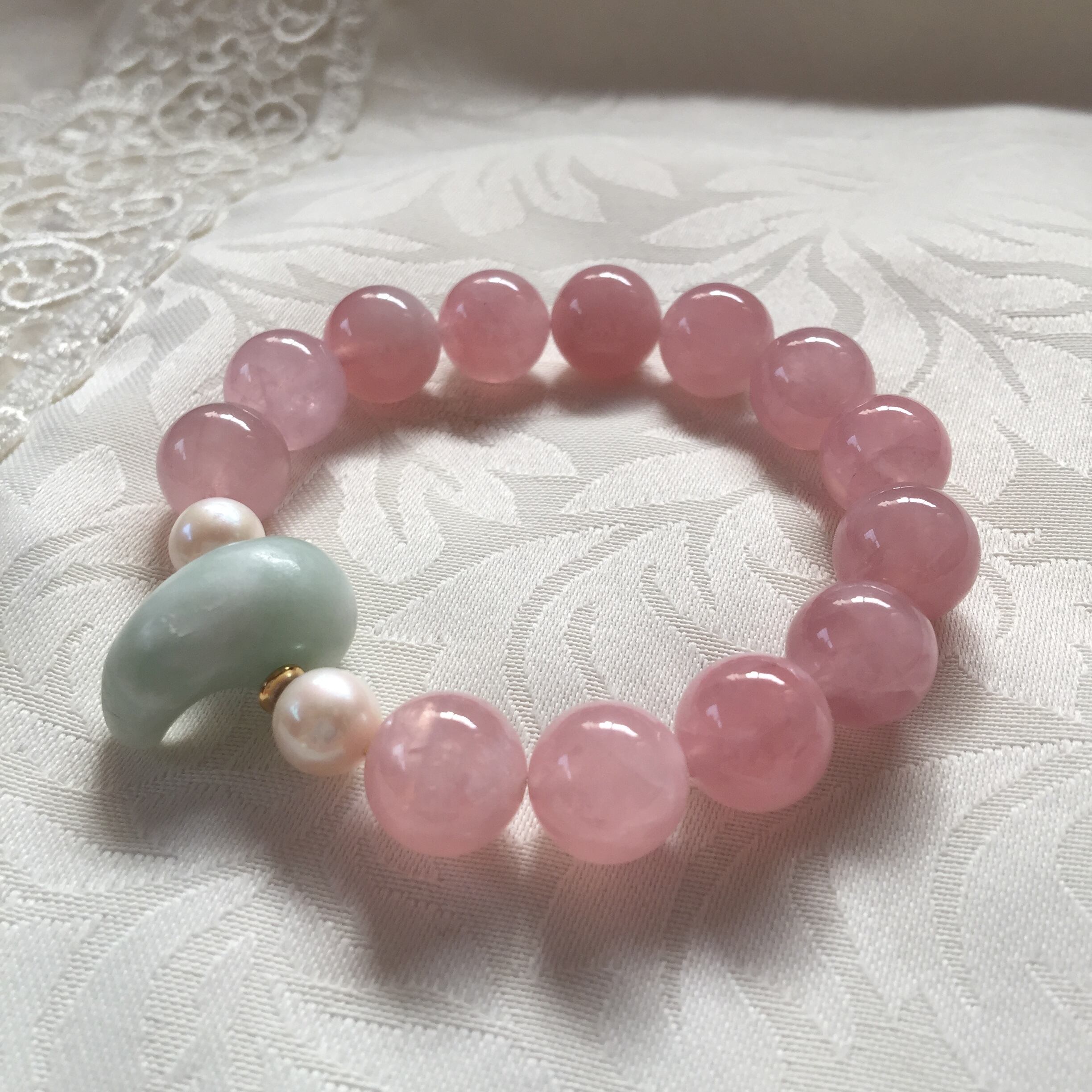ディープローズクォーツと糸魚川翡翠勾玉のブレスレット