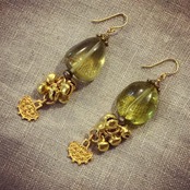 変容後の石、オウロベルデをつかって"出土系"のピアスができました。