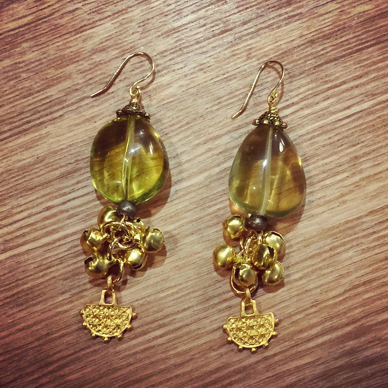 オーロヴェルデとヒッタイトサンの鈴なりピアス