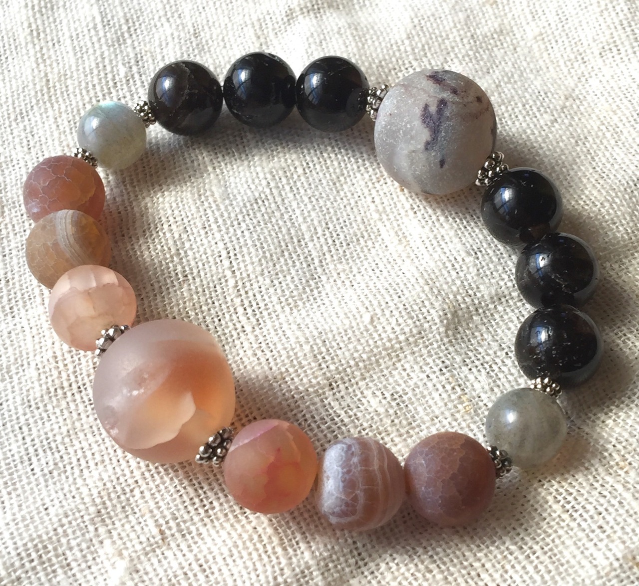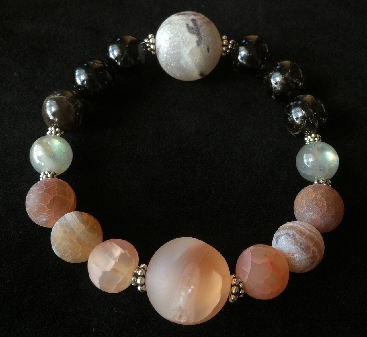 今回、同時に入手していたドゥルジーアゲートから惑星シリーズとして5本のブレスレットが完成しました。