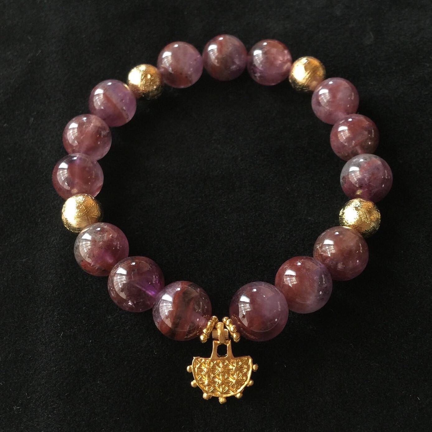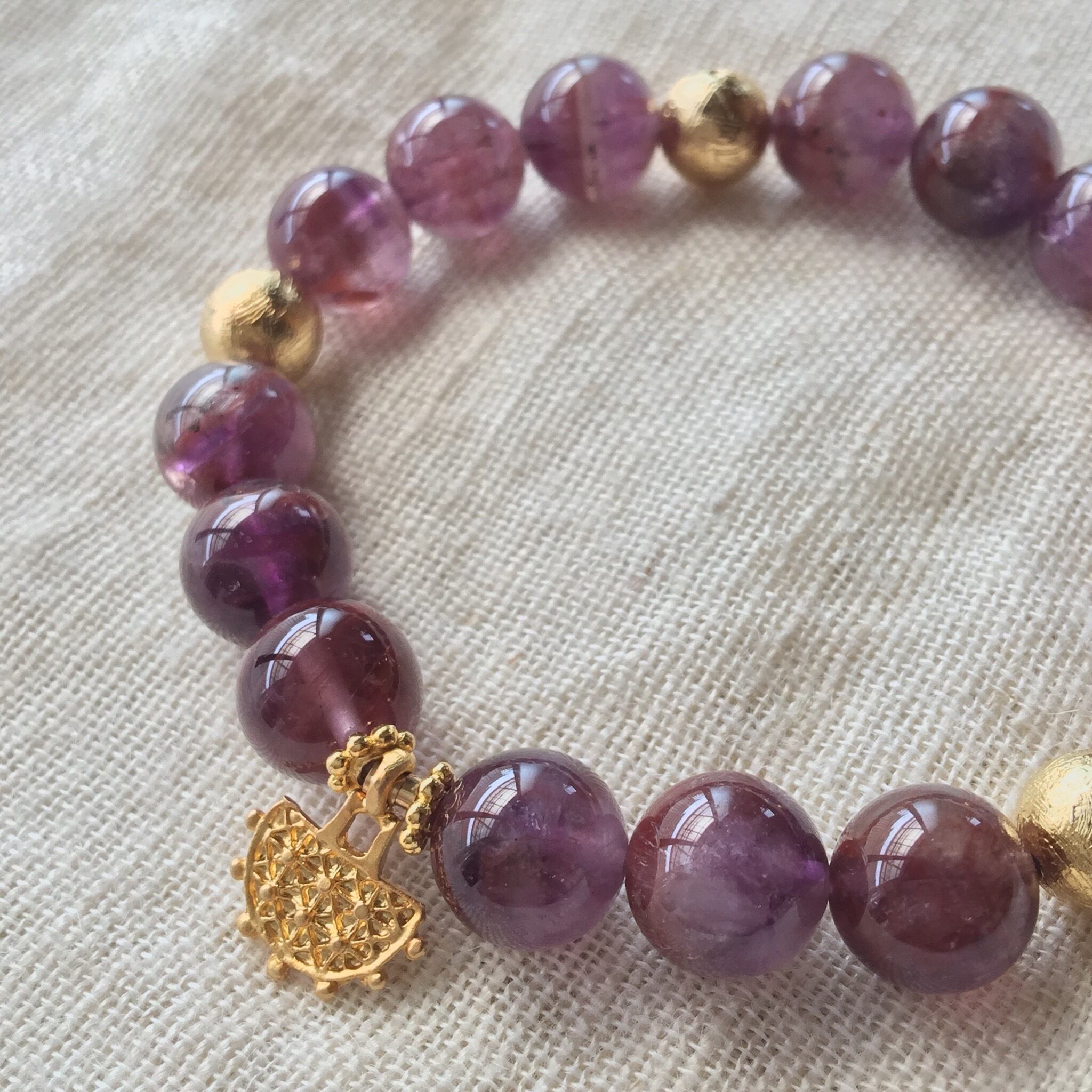 今回入荷したレッドアメジストは11ミリと今までご紹介したものより大粒ですが、明るめの紫色ベースで程よく優しい印象が加わり高貴な印象があります。